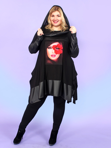 Молодёжная куртка с капюшоном. Фасон куртки слегка расклешен с перепадом длины. Украшена нашивками. Куртка застёгивается на молнию. Спереди карманы. Куртка на подкладке и утеплителе - синтепон 150гр.м2. Длина куртка спереди 88см, по спинке 96см.